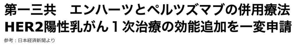 大黒柱エンハーツ HER2陽性乳がん“1次治療”への効能追加を申請!