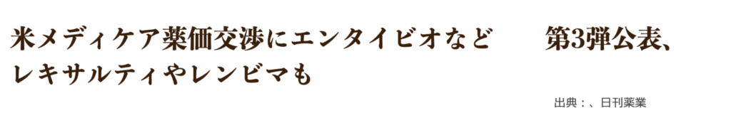 エンタイビオは、アメリカ政府による「薬価交渉(IRA)」の対象に選ばれました 。